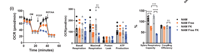 Mitokondrierne - de dele af cellen, der er ansvarlige for at producere energi - kunne stadig skabe en grundlæggende mængde energi, men de mistede evnen til at øge produktionen, når cellen havde brug for mere. Med andre ord var deres "energireserve" næsten væk. Både deres ekstra kapacitet og deres maksimale ydeevne faldt kraftigt. Da nikotinamid blev tilføjet igen, kom mitokondrierne hurtigt på fode igen, hvilket viser, at NAD⁺ er afgørende for at holde cellens energisystem kørende effektivt.