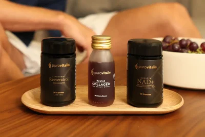 Collagene in acqua o in un frullato una volta al giorno; NAD⁺ Booster a colazione; Resveratrolo con il pasto principale. Consulta la sezione "Modalità d'uso" qui sopra e segui ogni etichetta.