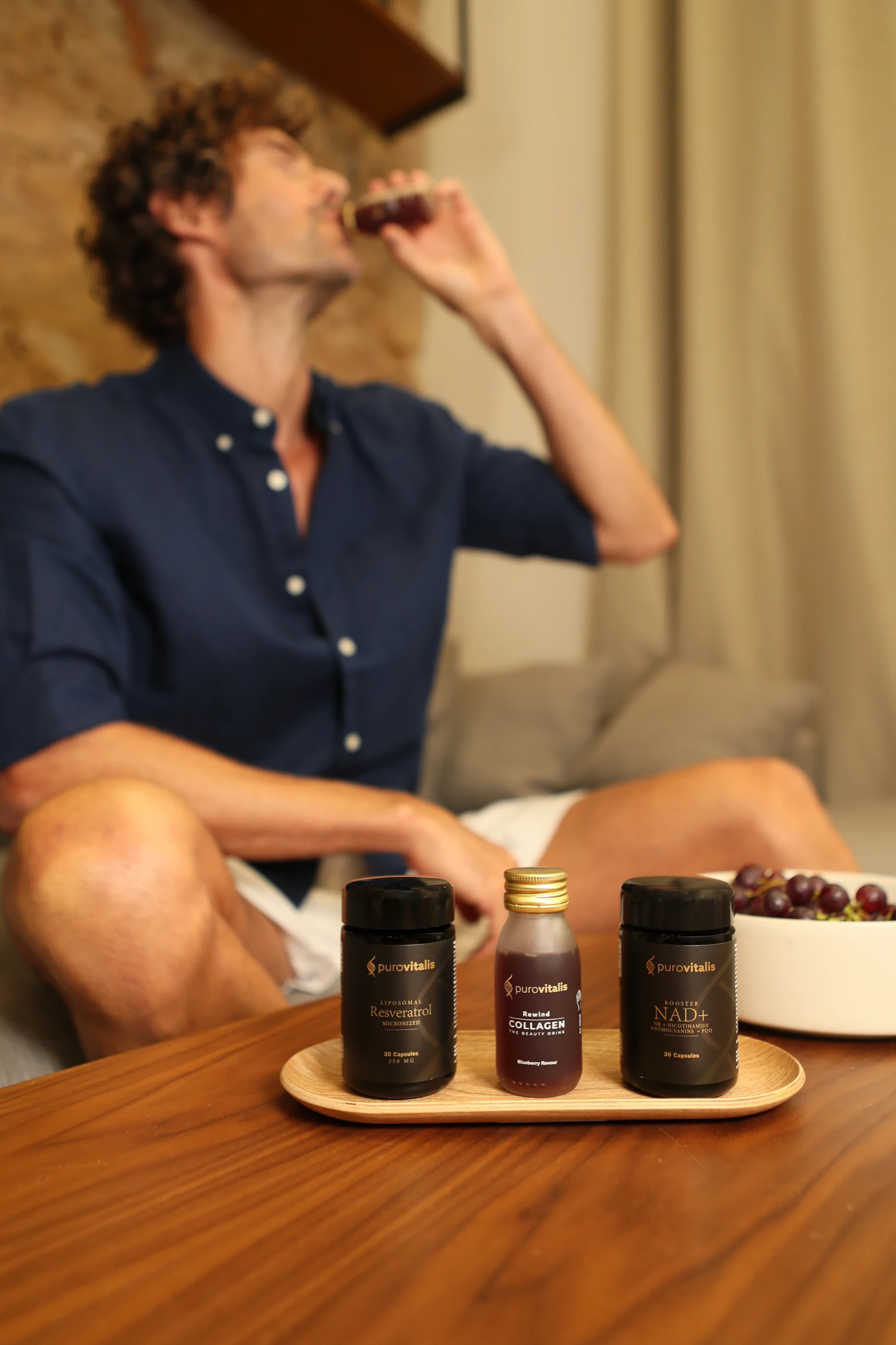 Sostieni la tua vitalità quotidiana e invecchia con grazia grazie alla potenza dei potenziatori NAD e del Resveratrolo. Formula liposomiale per un assorbimento ottimale.