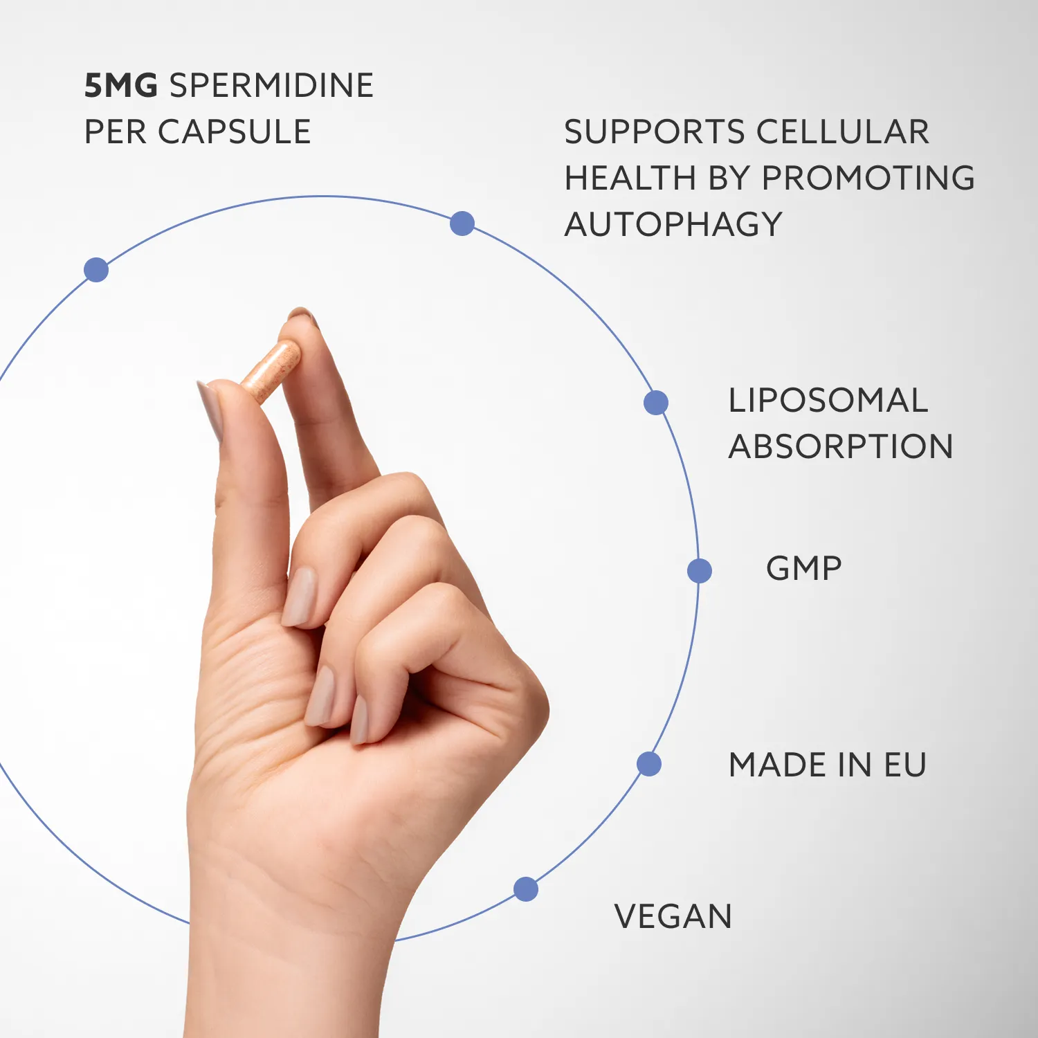 Daarom hebben we ons Liposomaal Spermidine Supplement ontwikkeld. Het is gemaakt om autofagie te ondersteunen, de manier van je lichaam om beschadigde cellen op te ruimen en ruimte te maken voor nieuwe, gezonde cellen.